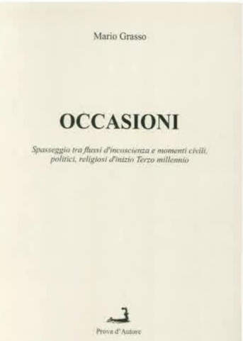 Mario Grasso (Acireale, 1932 – Catania, 2022), poeta, scrittore, saggista, critico letterario, direttore editoriale ed infaticabile operatore culturale, mi riporta al nostro primo incontro messinese, agli inizi degli anni Novanta del Novecento, quali giurati del Premio Vann’Antò. La scrivente in rappresentanza del Centro Studi Feliciano Rossitto di Ragusa, Mario Grasso in qualità di direttore della Casa Editrice Prova d’Autore di Catania, schierati a sostenere per la premiazione la stessa poesia dialettale, con accese e determinanti motivazioni. Ricordo ancora che a Messina la poesia fu germoglio alla nostra amicizia e al nostro lungo dialogo, avvolto dal vocabolario ardito ed appassionato del poeta Mario Grasso, abitato da voci che non periscono ma restano a testimoniare la magia di una straordinaria e singolare creatività. Così nel 1991, in occasione del decennale dell’Avis di Modica, presieduta dal dott. Guglielmo Magro, primario del Laboratorio Analisi dell’Ospedale di Modica, Mario Grasso fu invitato a presentare il mio primo libro di poesie “Ciottoli” al Teatro del Vicolo di Modica, ricolmo di una vera affluenza che seguì la voce intensa ed espressiva del relatore, capace di mediare parole, metafore ed emotività. Tra Modica e Catania, grazie alla nostra amicizia, si alternarono pubblicazioni, presentazioni di libri che mi segnarono intensamente, spingendomi ad imparare dallo scrittore e dalla sua narrazione colta tra paremiologia, sapienzialità espressiva e ardite metafore, la complessità della nostra odierna società. Così il vulcanico Mario Grasso, prediligendo la leggerezza di calviniana memoria, avverte che nella società attuale è in gioco l’importanza di una nuova idea di libertà. Quale? Quella connessa alla sfida della cultura come vissuto e come fondamento di civile rinascita. In virtù della sua pluriennale militanza letteraria, Grasso convoca personaggi vicini e lontani, sottopone all’incontro con il tempo sistemi di pensiero e visioni del mondo ed evoca, non senza il sale dell’arguzia, scrittori, saggisti, filosofi e critici che abbracciano il territorio nazionale. Che poi una buona parte degli autori, incontrati lungo la sua narrazione odeporica, siano siciliani è un dato che non discende soltanto dall’anagrafe geografica del nostro scrittore, ma chiama in causa lo straordinario rilievo giocato dalla Sicilia nel panorama del Novecento letterario italiano. Quasi a voler essere di parte, credo che nelle pagine gaussiane riesca a risuonare il difficile lusso di essere siciliani, legittimato dall’antinomia di una società, in cui proprio l’ossimoro e il paradosso restituiscono più pregnante la responsabilità della parola. A ragione l’indimenticato e compianto Pietro Barcellona, amico fraterno del nostro autore e grande intellettuale, presentando nel 2010 il “Saggilemmario” dello stesso Grasso, ci ha consegnato un ritratto che è opportuno citare: «Mario Grasso è un antico personaggio siciliano, di quelli che se la fanno tra proverbi e metafore e che hanno il gusto innato di scavare dentro le parole per trovare il filo di un discorso infinito» (P. Barcellona in La Sicilia del 25 aprile 2010). A tale enunciazione mi permetto di aggiungere la generosità intellettuale incarnata nell’incoraggiare i giovani esordienti a non tradire ispirazioni e valori culturali. Lo posso attestare personalmente, poiché al poeta Mario Grasso sono debitrice delle mie parole in figura. Avverto fortemente l’esigenza di soffermarmi su OCCASIONI Spasseggio tra flussi d’incoscienza e momenti civili, politici, religiosi d’inizio Terzo millennio di MARIO GRASSO all’AUDITORIUM “P. FLORIDIA” MODICA 10 APRILE 2016. Le Occasioni grassiane trasudano spasseggi di affascinante lettura sia per la fluidità dell’eloquio sia per le peripezie linguistiche tanto care al nostro, che si conferma glossatore delle parole del tempo.